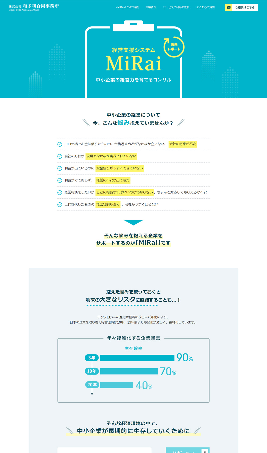 これらの内容を反映させ、「Miraiレポート」のサービス専用ページを制作いたしました。